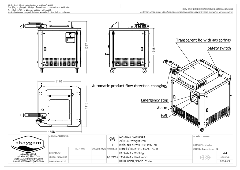 Bilyalı öğütme, çelik bilyalar kullanarak çikolata içeriğini inceltme tekniklerinden biridir. Verimli sonuç almak için öğütme işlemi 50 katı aşmamalı ve öğütülen içerik sıvı olmalıdır. Bütün içerik ayrı ayrı doğurudan makine haznesine eklenebilir ancak ön karıştırıcıda bütün içeriklerin karıştırılarak seyreltilmesini ve bu şekilde aktarılmasını tavsiye ederiz, böylece şeker ve benzeri diğer kuru maddenin çikolata pompasının içine yığılması engellenmiş olunur. Öğütme süresi ve ürün inceliği ters orantılıdır ve genellikle çikolatada istenen incelik 18 - 30 mikron aralığındadır. Karıştırıcı kolları sertleştirilmiş özel malzemeden imal edilir. Çikolata pompası ve üç yollu vana veya küçük modellerde bulunan elle döndürülebilen akış yön değiştirme grubu sayesinde sıvı içerik sirküle edilir veya öğütme işlemi bitince çikolata stok tankına aktarılır. RBM20, RBM40, RBM80, RBM160 ve RBM300 küçük işletmeler için tasarlandı, bu modellerde su soğutma grubu kendi bünyesindedir. LabBM10 ürün geliştirme veya laboratuvar kullanımı için tasarlandı, devirdaim işlemini gerçekleştirmek için çikolata pompası olmadığından dolayı yüksek miktarda bilya kullanılır. Bilyaların sürtünmesi sonucu ısı açığa çıkar bu ısıyı dengelemek için kendi bünyesinde soğutma grubu olmayan modellere solenoid valf eklenmiştir, böylece aşırı ısınma oluşması durumunda solenoid valf soğuk su girişine müsaade eder ve makina normal çalışma ısısına gelince geçişi kapatır.